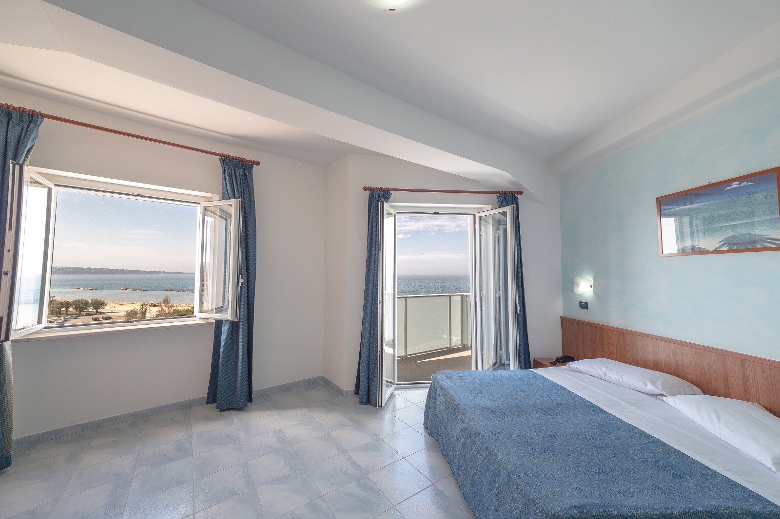 Le nostre Camere Vista Mare permettono la vista di un panorama luminoso a tutte le ore, ancor più spettacolare al tramonto.